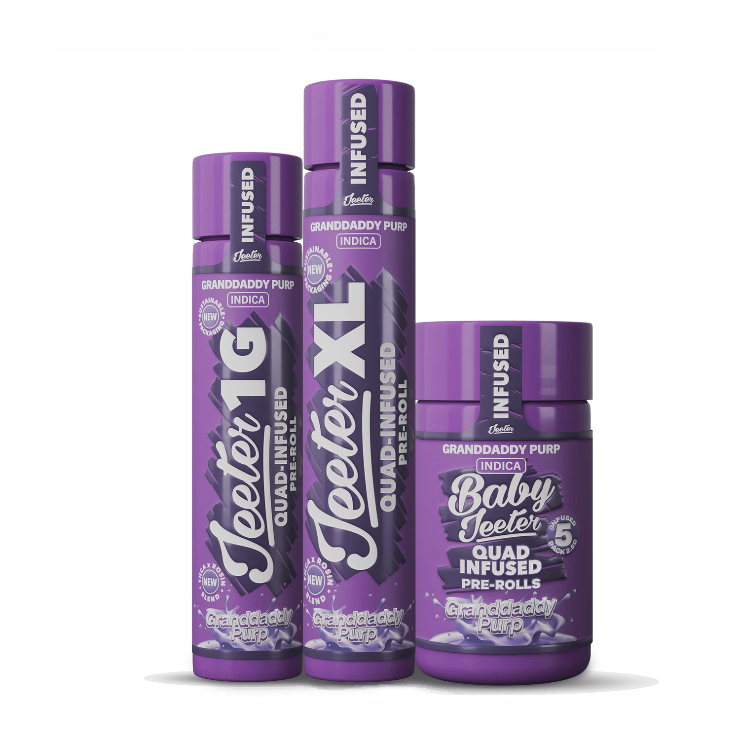 Granddaddy Purple .5g X 5pk Rosin Enhanced Diamonds Infused Pre-Roll Pack | Baby Jeeter