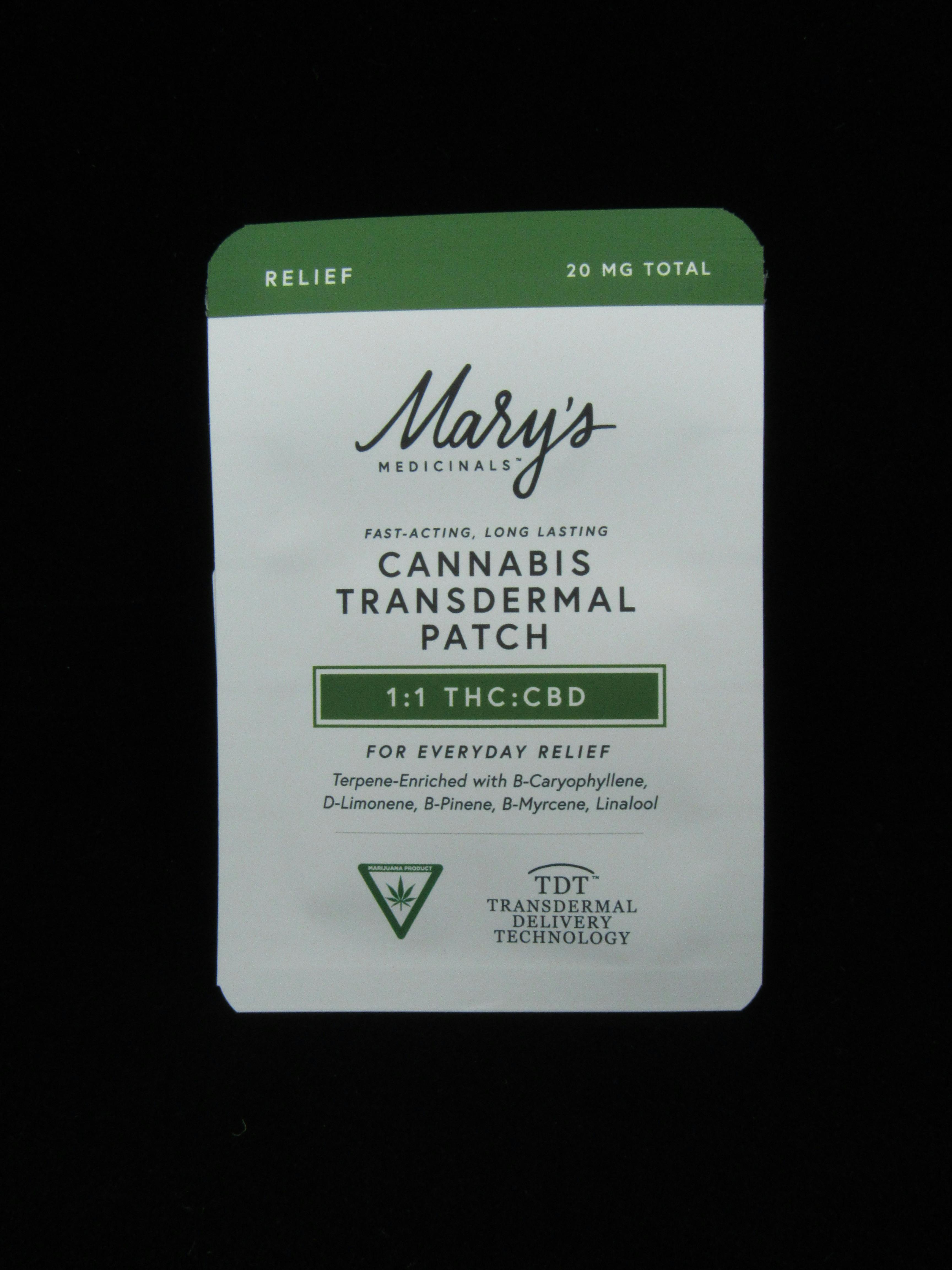 Relief 20mg 1:1 THC:CBD Transdermal Patch | Mary's Medicinal